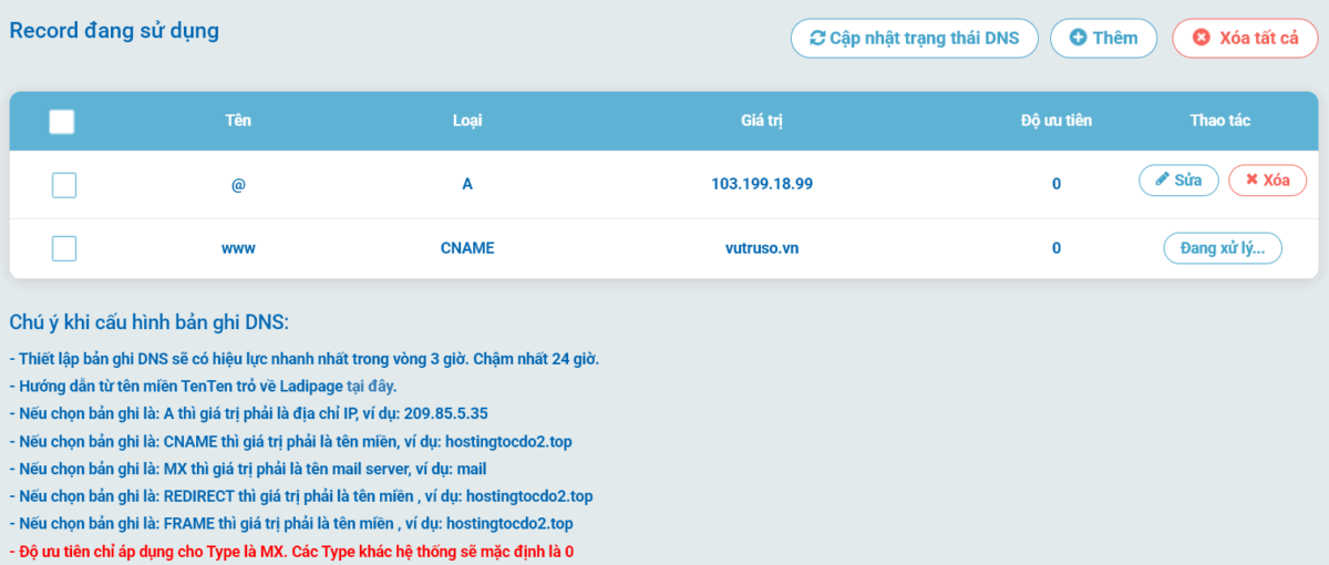 Hãy luôn kiểm tra kỹ cấu hình và đợi đủ thời gian để DNS propagation hoàn tất trước khi đánh giá kết quả.