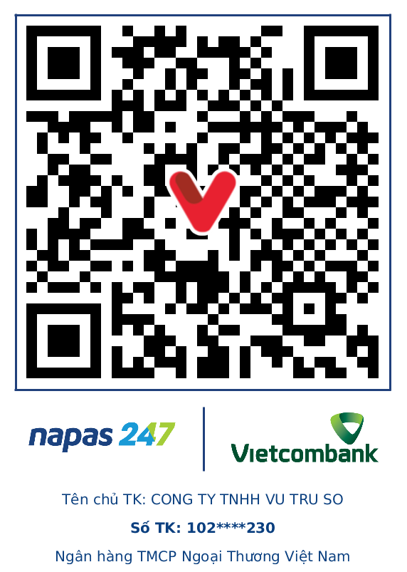 - Chủ tài khoản: CÔNG TY TNHH VŨ TRỤ SỐ - Số tài khoản: 1029575230