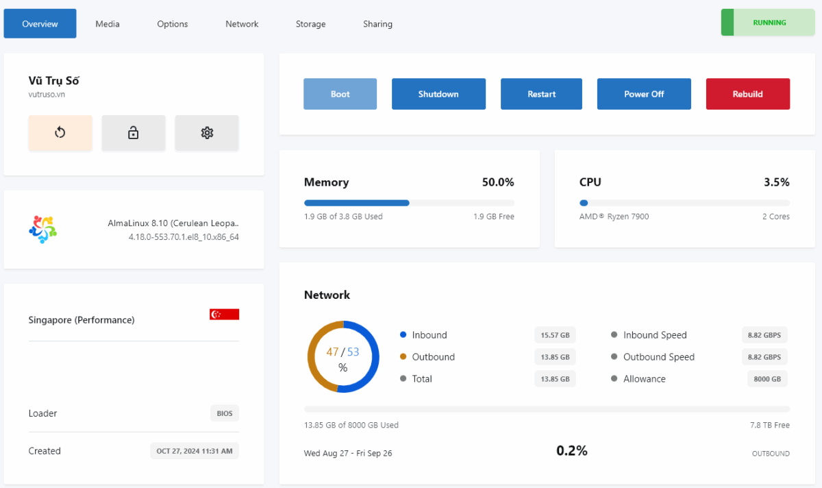 - Hosting được quản lý bởi công ty Vũ Trụ Số