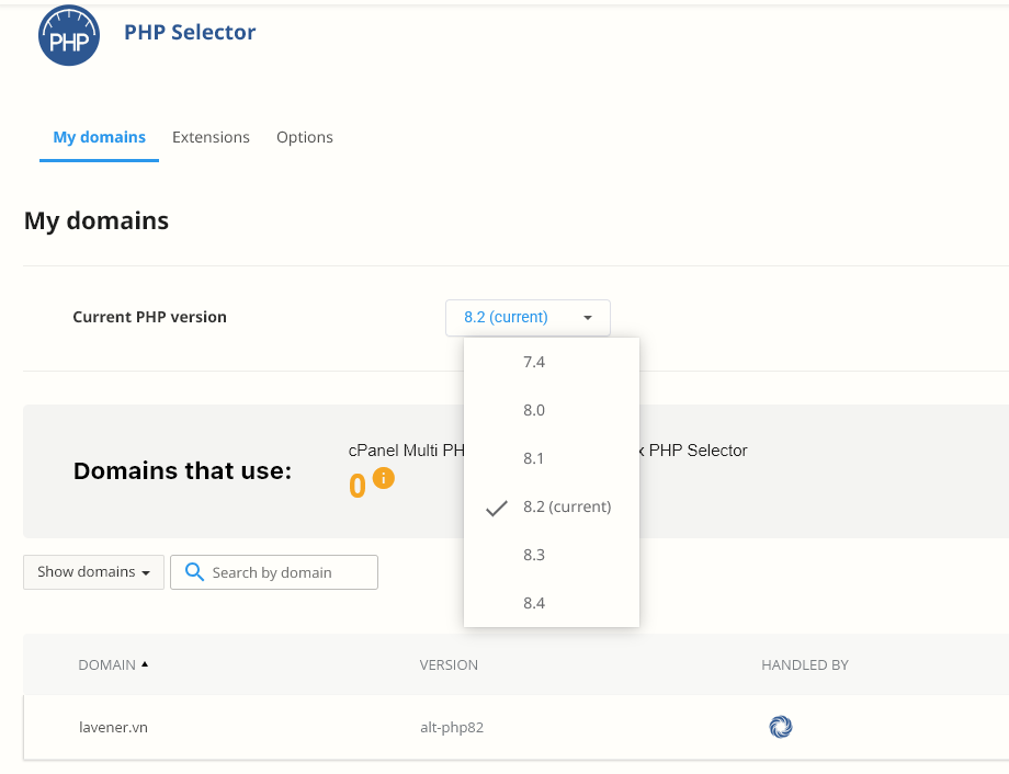 Cách thay đổi phiên bản PHP qua cPanel: