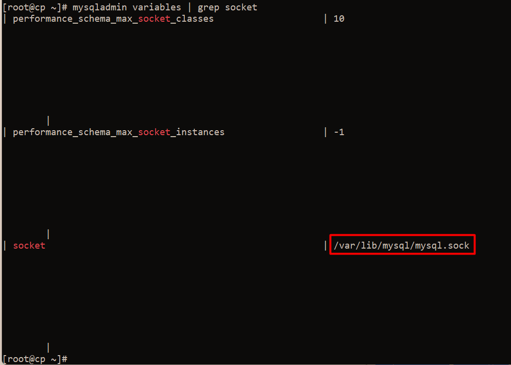| CentOS / AlmaLinux / Rocky | /var/lib/mysql/mysql.sock |