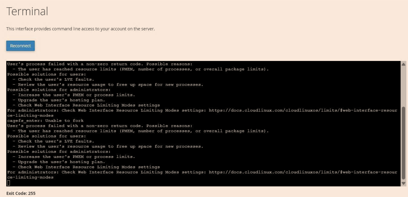 - Giảm số site trong cùng account cPanel (vì chúng chia chung NPROC/EP)